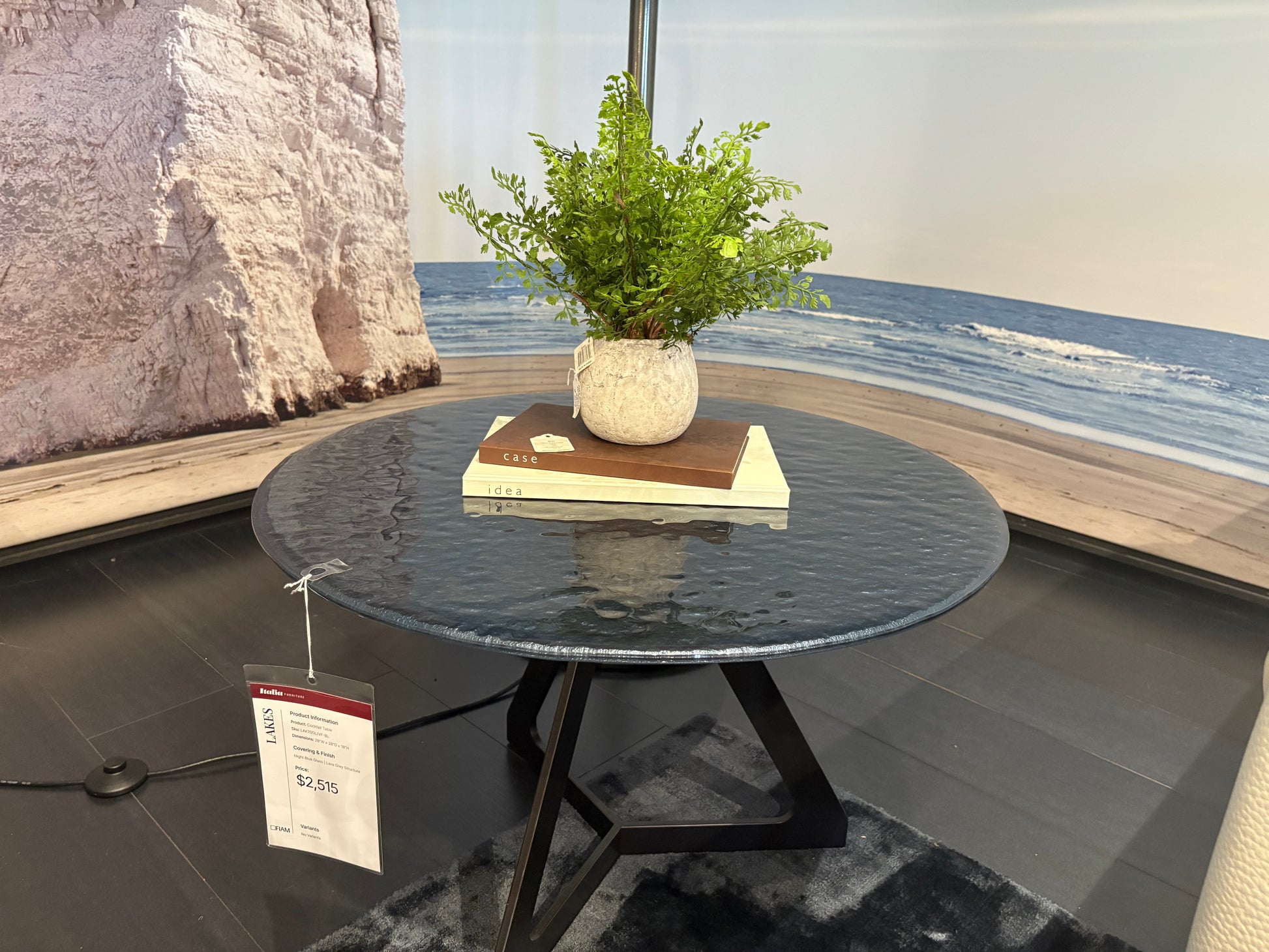 This beautifully crafted cocktail table is designed by Fiam as part of their Lakes collection. The glass back-lacquered top is designed to imitate the surface of lakes' reflections and ripples.